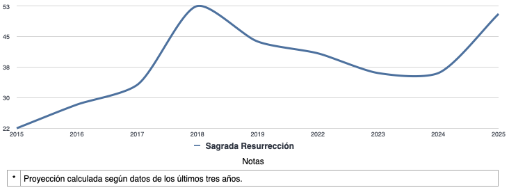 A lo largo del periodo analizado, el Domingo de Resurrección muestra una dinámica de estabilidad con variaciones moderadas, donde los cambios interanuales suelen responder a la evolución interna de la única hermandad que lo compone y a factores organizativos propios de una jornada que, por su posición al final del ciclo, presenta condicionantes específicos de participación.